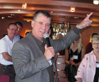 Our first group get together was that evening, a welcome cocktail party in the Crow's Nest. John introduced me as his webmaster so there was no staying in cognito for long. We soon discovered that we were the only "team" — all the other entrants were couples or singles. We were introduced to the various staff including John Bingham Racing director David Babner whom I email all the time about website stuff. He had brought his entire family: including parents and in-laws! A very fun bunch, especially his father William who never stopped joking the entire cruise.
