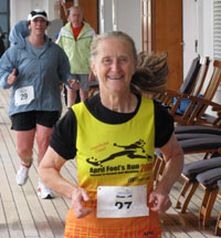 As John and Jenny were my website clients I knew about this event when it first happened in 2006. I was very intrigued by this idea of a staged marathon on a cruise and mentioned it to other club members. By fall 2007, Liz Dilasser and Linda Willesen announced that they were going with me. Soon we had 3 more join us: Pam Knowles, Susan Hunt and Helen Sabourin. We would all leave the families behind for a week of running, exploring, and bonding. At the last minute we were joined by one more runner friend, Frances Steinfeld of Aldergrove. The event sold out with 100 runners signed up to cruise and race.