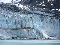 Tuesday morning found us in the calm waters of Glacier Bay. I decided to put in a short deck run to keep my legs loose (as if I needed more miles, clearly the ear patch was affecting my judgement). From 11am to 3pm it was glacier viewing time. First we attended a seminar by the local park ranger to find out about the geography and history of Glacier Bay - fascinating! Pea soup and hot drinks were served on the bow viewing deck. I took hundreds of photos; the scenery was spectacular and the weather cooperated with clouds giving way to sunshine. At one point we could see a grizzly bear way up on a rocky outcrop. Later, I felt like part of a "glacier paparrazzi" as we all waited with cameras at the ready for a chunk of ice to fall off the glacier. Only a tiny piece obliged, making a lot of noise but little visual impact. Who would have guessed we'd travel hundreds of miles to stand around watching ice melt.