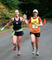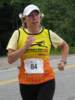After a few km's I caught up with some of the local runners. I ended up running and chatting most of the way with one of them, Susan, which made it really fun. She told me about the local running scene and kept me informed about what hills were coming up next. I was dragging my feet a bit on the uphills but made up for it on the descents. Susan and I weren't actually first women to finish — a visiting young woman from the southern US was about a minute faster. The course must have been a bit long as our final time was 50:30 and there's no way we were running over 8:00/mile, even with the hills accounted for. Others in the GAMM group also thought it must be a bit long. Nevertheless, everyone loved the course, and Liz won the female stage award this time!