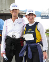 Linda ended up winning the female stage award for that day (closest to her deck run pace), much to her surprise. For that she received a special yellow hat and penguin pin. Way to go Linda!