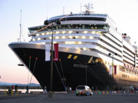 The rest of the gang were supposed to come and join me for dinner but never showed, and later I found out why: they had gotten into the wine in Frances' room! Pam has a story about mooning the pilot boat... I'll let her tell that one.