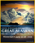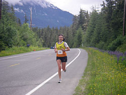 The mayor of Juneau officially started the race, and we were off. Right away I was out on my own. Every 2 miles were marked; at 2 miles I was running a comfortable 7:00 min/mile pace - slightly fast but I knew I'd slow down later so it would average out just fine. The scenery was beautiful, the course was quite flat, eagles were soaring overhead, and I was enjoying a peaceful run.