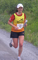I was getting close to the 4 mile mark when things started to go awry. Three local club volunteers at the 6 mile mark (on the other side of the road, heading back) were under the impression that they were the official turnaround point, and insisted that I head back from there. I said no, the turnaround was supposed to be near 5 miles according to our instructions, and I had only been running 4 miles, so that couldn't be right - besides there was a big "6" painted on the road and I had definitely not run 6 miles yet! They wouldn't listen to me, so rather than waste time arguing I decided to do as they said and deal with the consequences later. In hindsight I should have ignored them and kept running the same way... anyway I soon saw Jenny Hadfield and told her the volunteers were turning us around too soon, so fortunately she was able to radio them and set them straight before anyone else was misdirected.